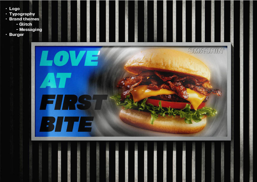 Unfortunately, we do not have any pre-production evidence for our logo designs. Due to the complex text-based nature of the logo we planned to create, it was difficult for our designer to make any sketches that formed a similar style to the design we wanted. As a result, he had to focus many hours in Adobe Illustrator to fine-tune the design to how the team visioned it. The primary consideration was to find a typeface that followed the design language of the brand. This followed to be Biggan Pro, a modern sans serif typography which encapsulates the brand ideology of smashin' burgers.